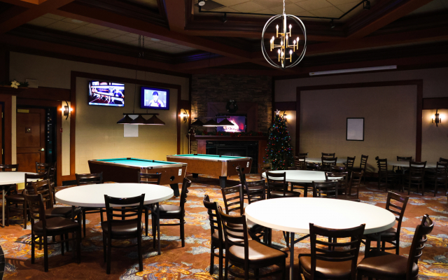 The Social Bar & Lounge can accommodate up to 50 guests and features a fully stocked bar, A/V equipment with a projector, a large drop-down screen, and TV screens so you won’t miss any of the action. So whether you’re hosting a poker tournament, holiday party, birthday celebration, or reception-style function, our cozy atmosphere, and options for plated meals or buffet set-up make the Social Bar & Lounge the perfect choice.